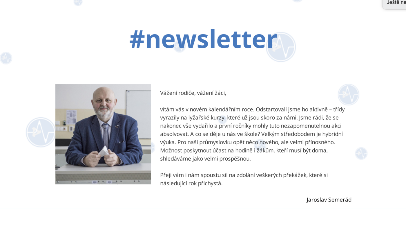 I v novém kalendářním pokračujeme s rozesíláním newsletteru školy rodičům a studentům ve snaze informovat je o aktuálním dění na půdě školy, chystaných událostech i důležitých sdělení školy. 😊 Oceníme jakoukoliv vaši zpětnou vazbu či návrhy na úpravu – nebojte se nám napsat na newsletter@pslib.cz. Děkujeme a přejeme příjemné čtení.