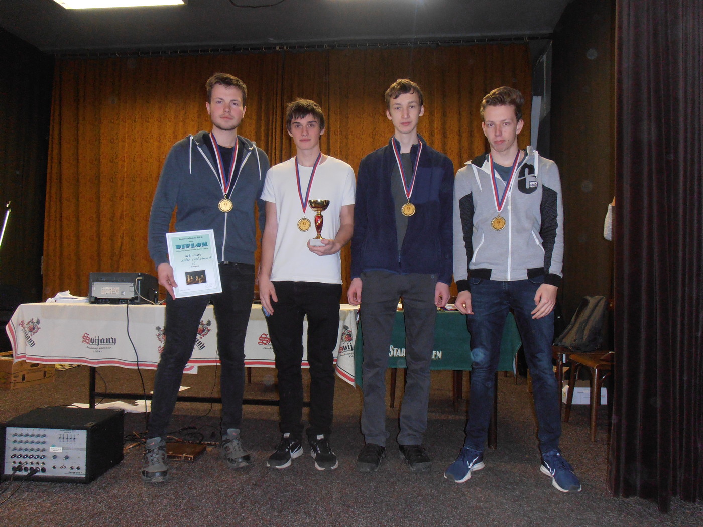 O úspěch průmyslovky se zasloužili Míra Hejduk (E4B), Ondra Hradecký (E4A), Jakub Pejznoch (S3B) a Jakub Luci (S3B).