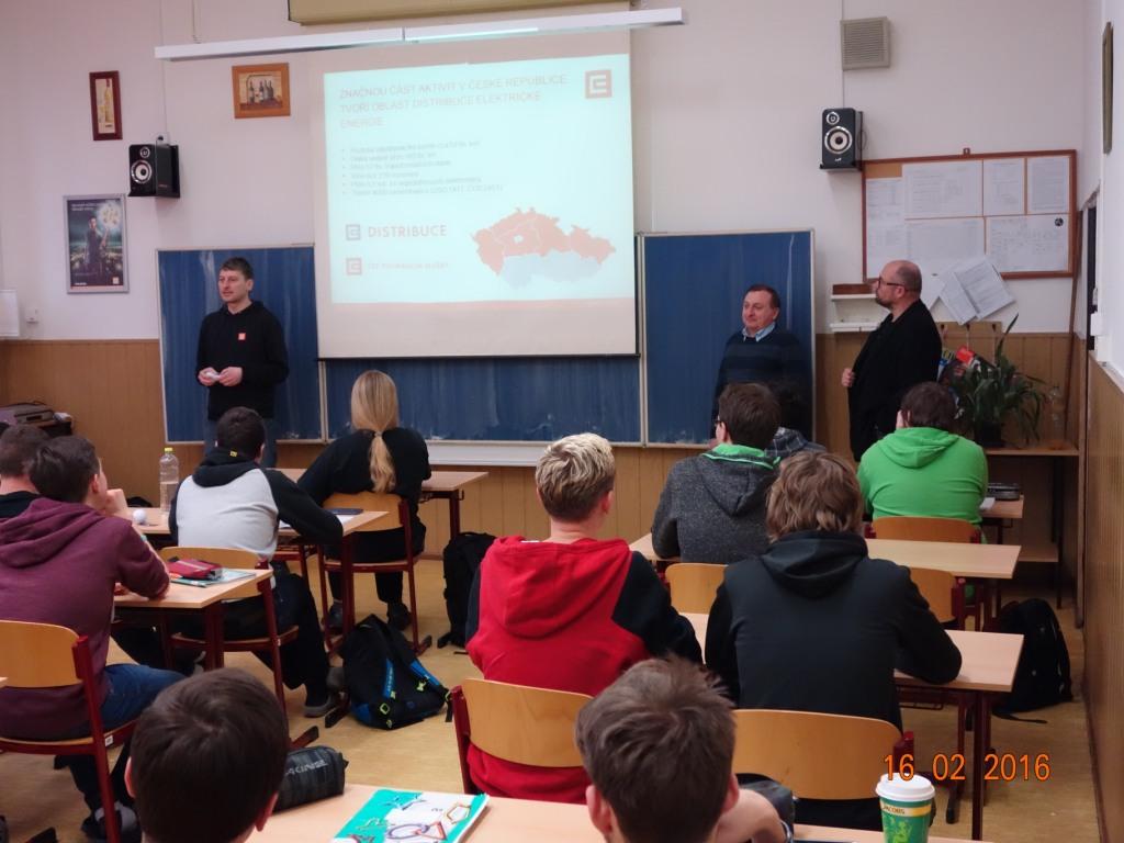 O tom, že je o naše absolventy zájem, svědčí i aktivita firmy ČEZ. Její pracovníci připravili pro žáky prezentaci o práci ve společnosti.. Úspěšný absolvent, který nemá praxi, nastoupí na místo praktikanta. Od počátku dostane slušný plat a v případě zájmu může po dvou letetch dostat smlouvu na dobu neurčitou.