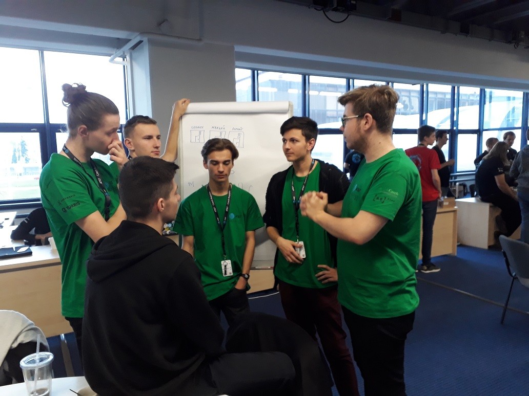 Our school was represented by a combined team of students from P4 (Marek Dohnal, Vojtěch Frömmel, Radek Kučera, Martin Přívozník, Ondřej Rethy) and E4A (Vojtěch Petrásek). Their application allows monitoring of conditions during transport and storage of goods.