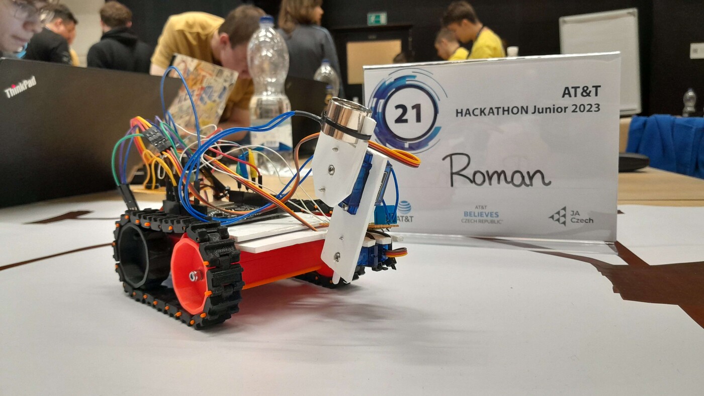 Tomáš Bezányi (E2A), Matěj Hrabal, Jaroslav Kunst, Marek Maškarinec, Jakub Víta (všichny P2B) s projektem: Modulární autonomní vozítko sledující zadanou dráhu s různými typy nástavců.