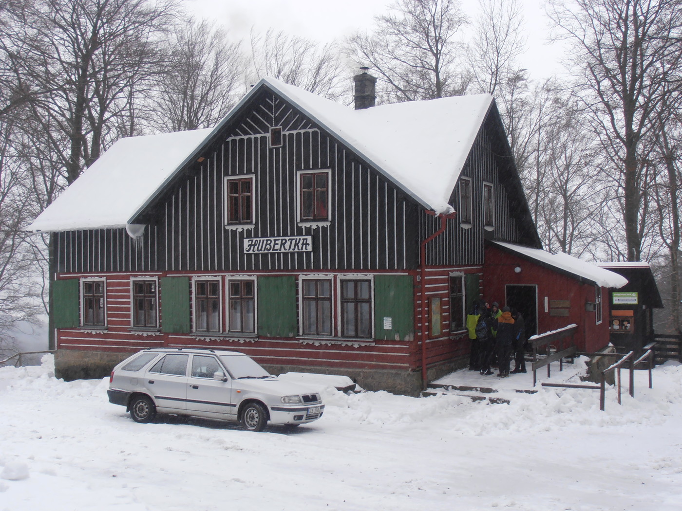 Po příjezdu do Bílého Potoka pod Smrkem jsme vyrazili na svah Jizerských hor, směrem na chatu Hubertku. Přibližně po hodinové chůzi zasněženým terénem jsme na Hubertku dorazili a ubytovali se v ní. Po chvíli jsme vyrazili na Paličník, jeden z vrcholků Jizerských hor. Cesta na Paličník trvala asi 2 a půl hodiny, ale řeknu vám, stálo to za to. Ačkoliv začalo sněžit v noci, cesta na Paličník byla hotová sněžná túra. Zapadali jsme po kolena a chvílemi i lezli po čtyřech. Ale stálo to za to. Pohled z Paličníku během sněhové bouře byl jeden z nejkrásnějších pohledů, co se kdy může člověku naskytnout. Zpátky už na chatě Hubertka, nás k večeři přivítala neobvyklá specialita a to „Raklety“. To vám byla dobrota! Než se kdo nadál, slehla se po nich zem. Druhé ráno jsme vyrazili na Svinský vrch, abychom se naposledy rozhlédli po překrásné zasněžené krajině Jizerských hor a potom jsme šli zpátky na chatu. Zde jsme jako obvykle svedli tuhý boj se sbalením spacáků. Nakonec se to s mírným násilím povedlo a mohli jsme vyrazit domů. Cesta vlakem už byla jen tečkou za super výletem.