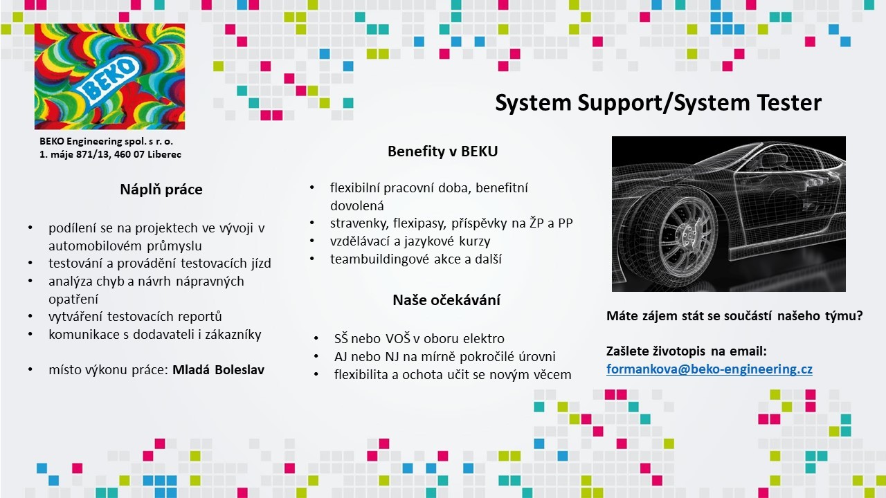 - 07. 06. 2019 - Nabídka pracovní pozice, "System tester" - BEKO Engineering spol. s r.o. (Mladá Boleslav), webové stránky
