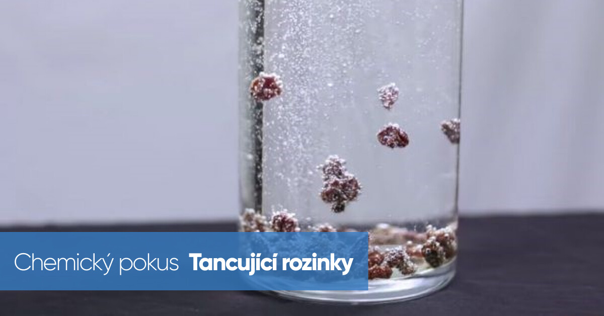Pokus se nazývá „tančící“ rozinky, jelikož rozinky putují od hladiny ke dnu a zpět.