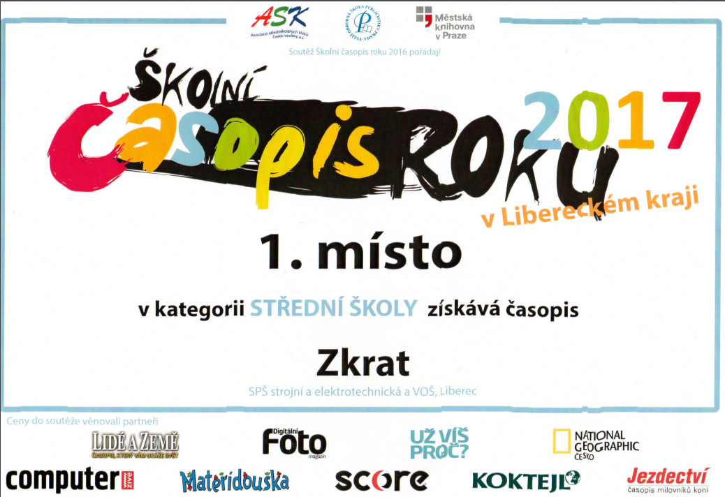 Dne 3.5.se naši studenti vydali do Prahy, obhájit titul v soutěži Školní časopis roku 2017. Zázemí soutěže poskytla Vyšší odborná škola publicistiky a opět nabídla krásný zážitek v podobě přednášek. Studentskou výpravu tvořili tři studenti Lycea v doprovodu Evy Šímové. Navíc naši studenti nezklamali a vyhráli ve všech možných kategoriích, čímž si vysloužili prvenství v Libereckém kraji a postup do celostátního kola. Doufáme, že i v pokračování soutěže se jim bude dařit jako doposud.