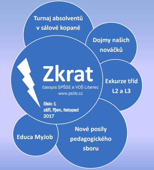 Nové vydání školního časopisu Zkrat, ve kterém naleznete shrnutí školních událostí v září, říjnu a listopadu. Nechybí ani rozhovory s žáky prvních ročníků o jejich názorech na kantory, spolužáky a celkový dojem, jakým na ně škola působí. Lea Jenčová, Martina Krotilová, Petr Zdráhala – to jsou jména některých našich nových kantorů, o kterých se můžete dozvědět nemálo informácí hned v několika rozhovorech.